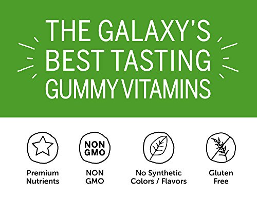 -. Feature : 13 ESSENTIAL NUTRIENTS & WILD-CAUGHT OMEGA 3 FISH OIL for brain health* / VITAMIN D3 for bone health* + HIGH POTENCY B12 for mental focus and energy balance* / NON-GMO. GLUTEN-FREE. ALLERGEN-FREE. Contains NO synthetic colors, artificial flavors, sweeteners, or preservatives. TESTED AT EVERY STAGE of the manufacturing process. / MANUFACTURED IN CALIFORNIA with premium ingredients from around the world. / GALAXY'S BEST TASTING GUMMY! We spread our nutrients out over four gummies so they don't taste fishy or vitamin-y. Our ORGANIC CANE SUGAR dusting keeps gummies from sticking to your teeth!