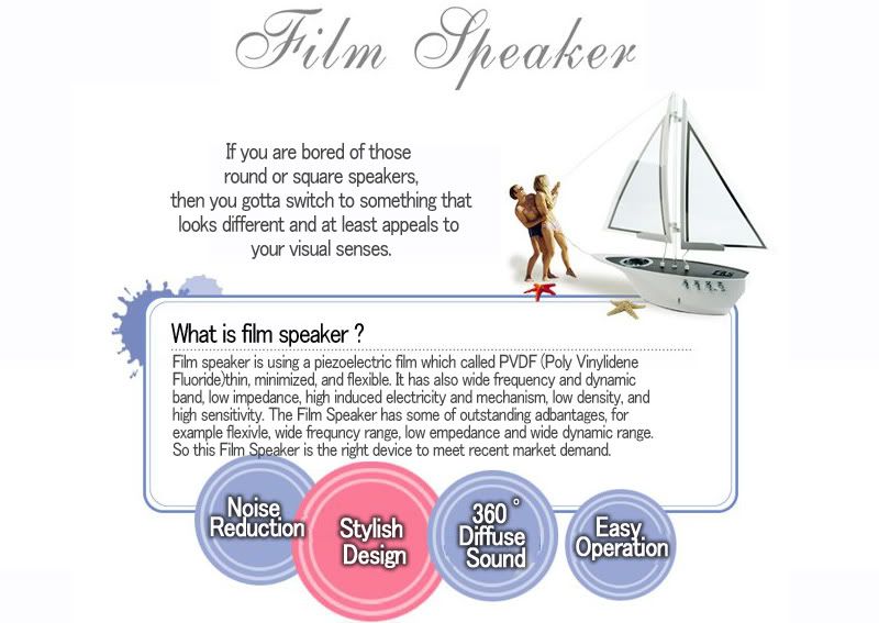 Sail-Shaped film speaker and deck-shaped subwoofer,