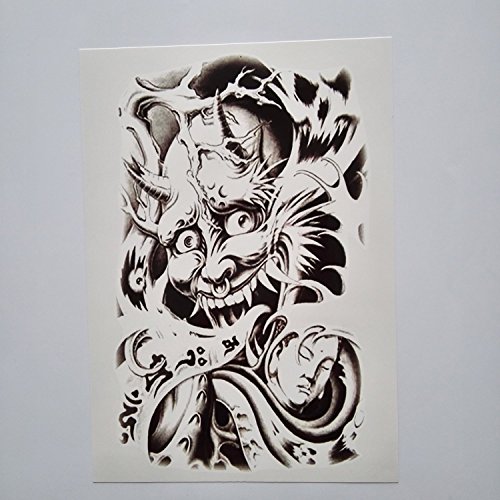 -. Title : Kotbs 4 Sheets Pack Large Tattoo Sticker for Men Women Body Art Temporary Tattoos Paper Devil Skull Buddha Designs