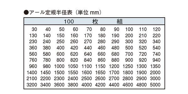 一枚一枚の定規にはそれぞれの曲線を表す弧の半径(アール)がmmで刻印されています。