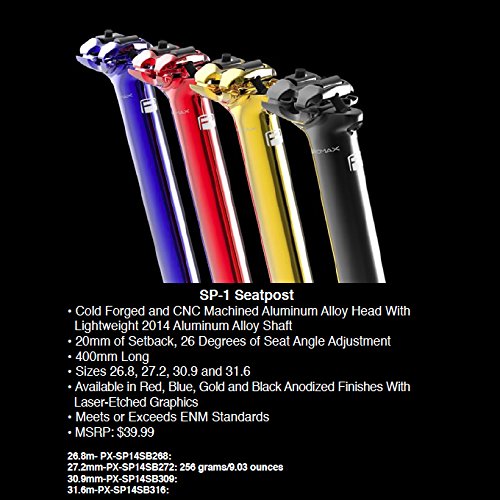 Studio : Cyclone Bicycle Publisher : Cyclone Bicycle Binding : Sports Product Description The SP-1 seat post is made using lightweight 2014 aluminum alloy tubing and a cold forged, aluminum, alloy head. The two-bolt head design ensures solid seat positioning and plenty of adjustability. Each post has 20 millimeters of setback and 26 degrees of. 0