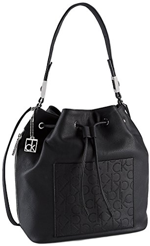 this chic pebbled faux leather tote bag has a drawstring closure, polished metallic details and a large front slip pocket with a textured logo design. pebbled faux leather bucket bag drawstring closure padded + adjustable shoulder strap thin crossbody strap large front logo slip pocket + textured logo design 1 interior zip pocket + 1 large slip pocket exterior side pocket + exposed zip hanging metallic logo charm FABRIC + CARE faux leather twill lining imported FIT + SIZING 9" handle drop 20" shoulder drop 12" wide x 12" tall x 7" deep STYLE NUMBER style number 36207181Feature