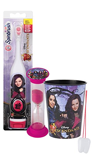-. Binding : Health and Beauty -. Brand : SmileCare -. EAN : 0761656256264 -. Feature : (1) Arm & Hammer Kid's Spinbrush Disney Descendants Powered Toothbrush (Assorted Characters) Batteries Included! / (1) Disney Descendants 16 oz Mouthwash Rinse Cup. Doubles as Toothbrush Holder! / (1) Dentist Recommended 2 Minute Descendants Themed Brushing Timer (Assorted Styles) / Plus Bonus "Remember to Brush" Visual Aid Tooth Saver Necklace. Hang it in their bathroom or by their bed so they remember to keep their chompers sparkly fresh. You could also use these tooth charms to save one of your child's baby teeth. -. IsAdultProduct : 0 -. Label : Arm & Hammer -. Manufacturer : Arm & Hammer -. MPN : 01201 -. PackageQuantity : 3 -. PartNumber : 01201 -. ProductGroup : Health and Beauty -. ProductTypeName : HEALTH_PERSONAL_CARE -. Publisher : Arm & Hammer -. Studio : Arm & Hammer -. Title : Disney "Descendants" Inspired 3pc. Bright Smile Oral Hygiene Set! Turbo Powered Spin Toothbrush, Brushing Timer & Mouthwash Rise Cup! Plus Bonus "Remember to Brush" Visual Aid! -. UPC : 761656256264