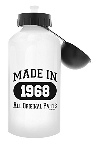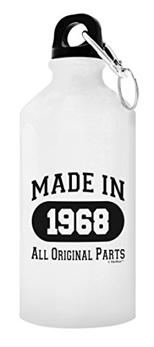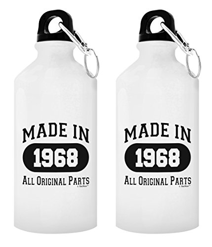A 50th birthday water bottle is a funny 50th birthday gift they can enjoy for years to come. This novelty 50th birthday gift makes a funny birthday gift for Dad. This white aluminum water bottle holds 18 ounces of hot or cold liquid, and includes both a carabiner clip screw-top and a sports top for your convenience. This aluminum water bottle is a perfect travel size bottle for taking to sporting events, enjoying outdoor activities, or keeping hydrated at the office. The convenient size makes this portable water bottle a perfect water bottle for women, water bottle for men, or kids water bottle. In addition to bottled water, this lightweight water bottle is perfect for holding ice cubes. The imprinted design will display on both sides of the water bottle as pictured. The premium full color sublimation imprint creates a vibrant, long lasting, and lead-free design. Handwashing is recommended.Feature