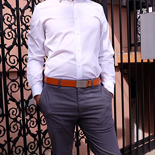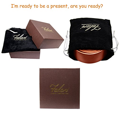 Falari Men's Dress Belt Jeans Belt 100% Full Grain Genuine Leather, 35mm Strap. Customer can trim down the strap to your exact waist size. The belt is packed in a velvet bag enclosed a elegant gift box.