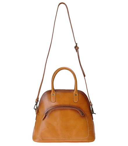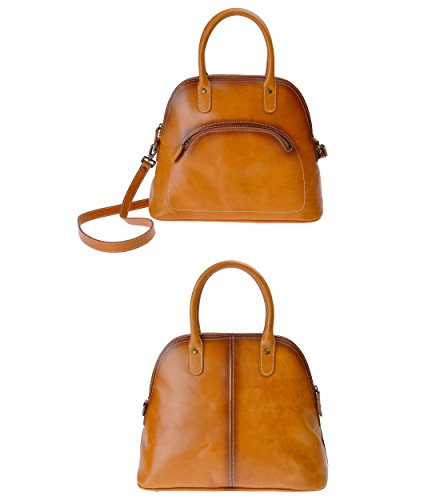 ZLYC Women's Vintage Handmade Leather Seashell Bags Cross Body Shoulder Handbag Top Handle Bag