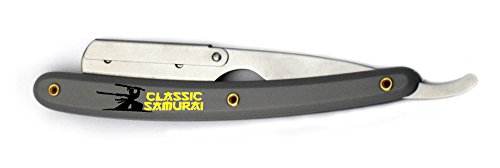 Classic Samurai Professional straight edge barber razor is made from genuine surgical grade stainless steel! Perfect for Barbershop and Personal Usage. Rounded exposure at the end of the blade compartment helps to minimize cuts.