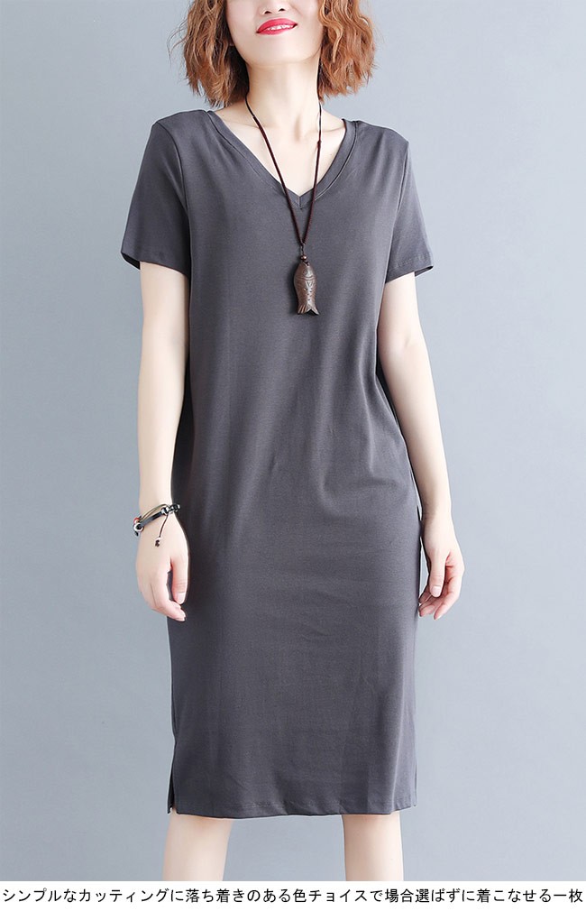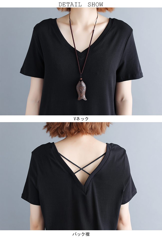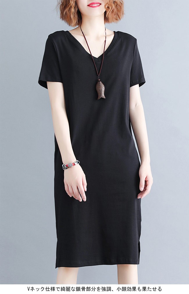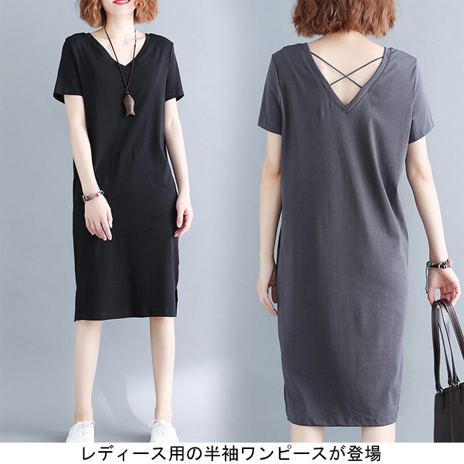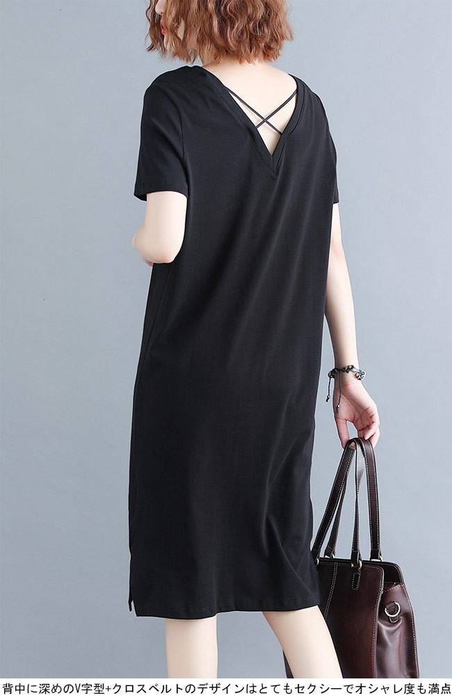 ワンピース レディース 半袖 Vネック 膝丈ワンピ ゆったり 女性用 夏物 着やせ 半袖ワンピース ミディアム丈 大きいサイズ セクシー 着まわしレディース用の半袖ワンピースが登場Vネック仕様で綺麗な鎖骨部分を強調、小顔効果も果たせる背中に深めのV字型+クロスベルトのデザインはとてもセクシーでオシャレ度も満点ゆったりし過ぎずタイト過ぎずのシルエットで美しいボディーラインを引き立て、とても気質アップシンプルなカッティングに落ち着きのある色チョイスで場合選ばずに着こなせる一枚カラー:ブラック グレー素材 綿混紡サイズ(cm) XL 2XL 3XL 4XLXL 総丈100 バスト98 肩幅382XL 総丈101 バスト108 肩幅393XL 総丈102 バスト118 肩幅414XL 総丈103 バスト128 肩幅43ご注意:※サイズは平置きサイズです。素人採寸ですので、若干の誤差がございます、ご了承ください。