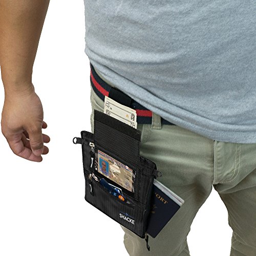 -. Brand : Shacke -. Feature : Made From Light Durable Material with Soft Backing / Simply strap to your belt loop and tucked in between your pants and underwear / 3 Separate Zipper Pouches Offering Maximize Protection & Security / Lined with RFID Anti Theft Material to Protect your Credit Card and Passport / Fits all currency from US, EURO, AUS, and Asia. -. ProductGroup : Apparel -. ProductTypeName : LAGE -. Title : Shacke Hidden Travel Belt Wallet w/ RFID Blocker