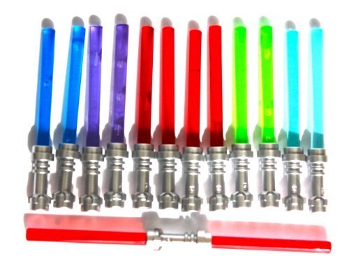 -. Feature : This Set is Deluxe, 6 Red, 2 Rare Transparent Green / 2 Blue, 2 Turquoise, and 2 Purple / Enough Metallic Hilts for All as Well as a Double Red Saber. / Lightsabers made to fit into your L.E.G.O figure's hands. Each is Just Under 2 Inches Long / Sold LOOSE Without Retail Packaging