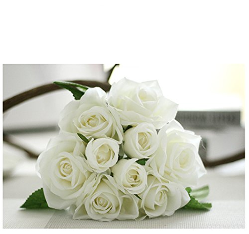 Crt Gucy Artificial Flowers Fake Rose Wedding Bridal Bouquet For Home Wedding Party Decoration,Pure White