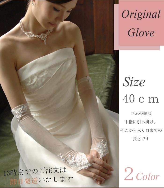| グローブの生地やレースは繊細なものですので、場合によっては少しのひっかかりなどでも、糸ひけなどが発生する場合もございます。お取り扱いに気をつけてください。 |