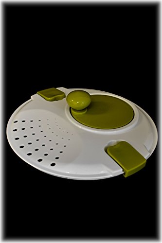-. Title : 9.5" Plastic White & Green Salad Spinner With Spinning Knob & Strainer Lid