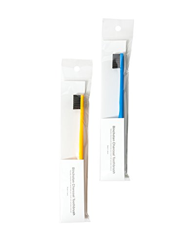 -. Title : Binchotan Charcoal Standard Toothbrush - Blue & Yellow - Set of 2