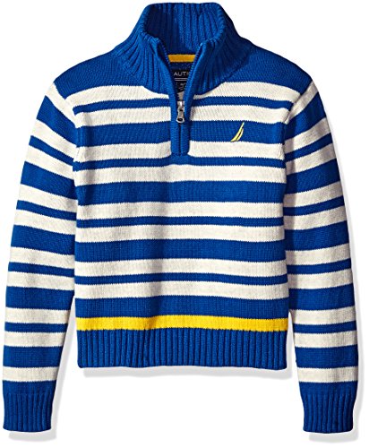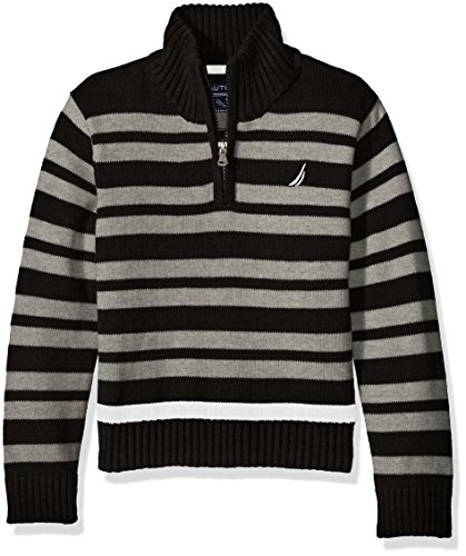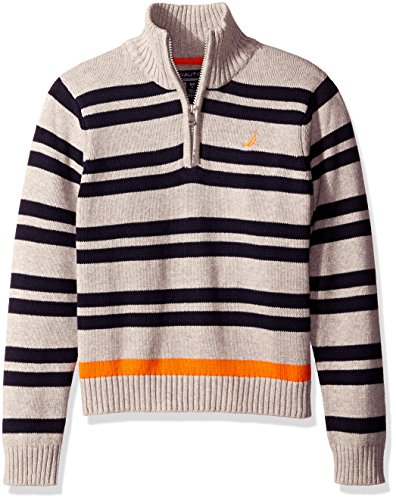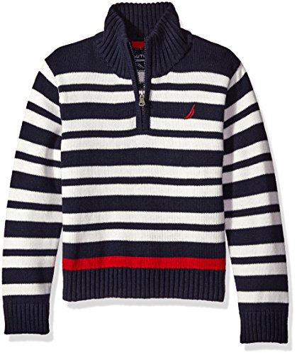 Nautica Big Boys Zip Neck 'Clean Pop' Striped Sweater, Sport Navy, Large