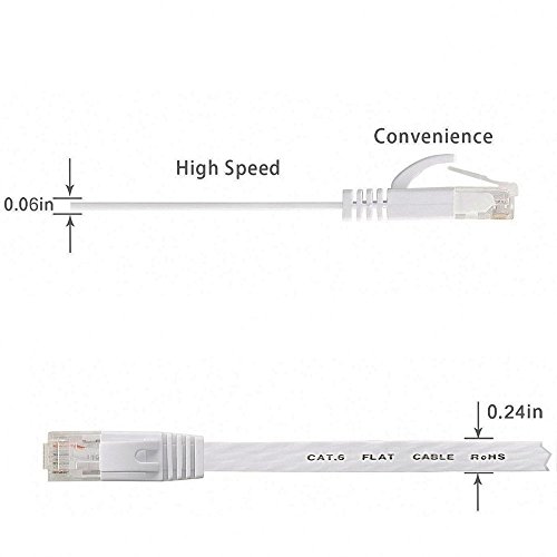 Studio : Bxton Publisher : Bxton Binding : Electronics Product Description Size:50 Feet | Color:White Ultra Slim and Flat Profile At a thickness of just 1.5mm, the Cat 6 Flat Network Ethernet cables are perfectly camouflaged underneath carpets, walls, or even behind furniture. This specially designed flat cable makes it easy to fit between spaces, improving the look of your home or office. Built for Speed and Reliable Connectivity This Ethernet cable is capable of transmitting data at speeds of up to 1.0 Gbps over 100m of cable with increased transmission frequencies of up to 250 MHz. It is constructed with 4 twisted pairs (UTP) of copper wires, with RJ45 connectors at both ends of the cable. Compared to the Cat 5e network Ethernet cable, the more stringent specifications and improved quality in twisting of the wires provides better protection from crosstalk, noise, and interference that can degrade the signal quality. Designed for Home and Office Network RJ45 connectors offer universal connectivity to computers and related network components. The molded, snagless boot prevents unwanted cable snags during installation. Surf the net, game, stream videos/music, etc. at greater, more consistent speeds. Limited Lifetime Warranty Your product is included with a limited lifetime warranty. Please visit our website for more details. NOTE: Your network speed is determined by many factors, including the cable, your modem, router, other network components, and Internet Service Provider (ISP). Compatibility: - Computers - Printers - Routers - Switch Boxes - Servers - Network Storage Devices - Smart Televisions - PlayStation 3/4 - Xbox 360/One - etc.