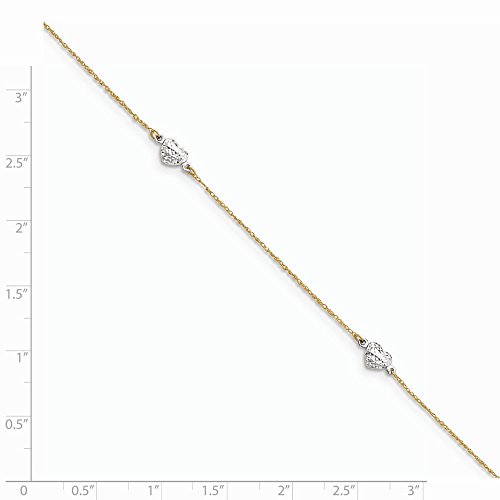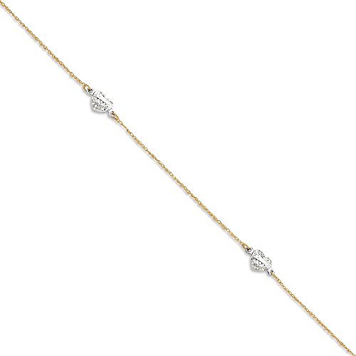 ICECARATS DESIGNER JEWELRY 14K TWO TONE YELLOW GOLD PUFF HEART 9 INCH 1 INCH ADJUSTABLE CHAIN PLUS SIZE EXTENDER ANKLET FOR WOMEN ANKLE BEACH CHAIN BRACELET