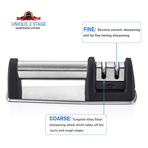 ¡Ì HIGH QUALITY- high qumetals with soft ABS finger-grip handle for better comfort and control. No tedious grinding and no worries about damaging your expensive knives with handheld stone.