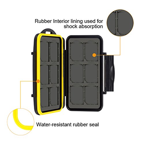 KUPTON memory card case is a rugged, water-resistant and protective box. It's made of polycarbonate and extremely shock resistant. It can effectively protect against damage from water, sand, dust, etc. You can put up to 12 pieces of SDHC / SDXC card / Micro SD card in this safety case.