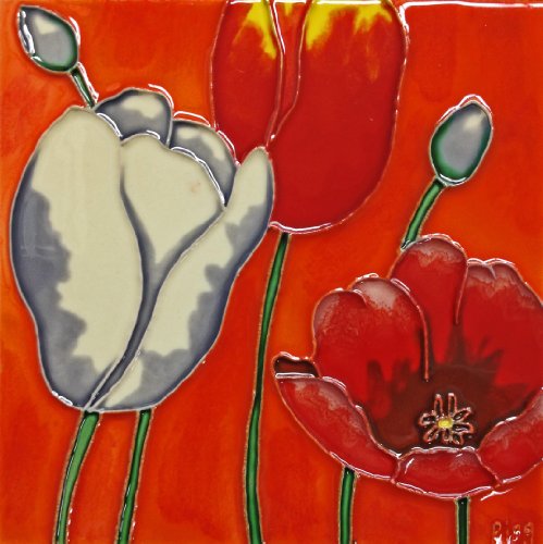 Continental Art Center BD-0308 8 by 8-Inch Three Poppy Flower with Orange Background Ceramic Art Tile