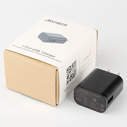 Feature : Output current of 1A, Output voltage of DC 5V; Input voltage of AC 100V-240V / Universal USB power Adapter for All Archeer Bluetooth Speakers/Rounter/iPod/iPhone/Android Smartphones/Digital Camera etc. (Search "quick charge" for Archeer QC3.0 Dual USB Wall charger) / With UL and FCC certification; all-around safeguards against over-current, over-charging and over-heating incidents / Simply connect the charging cable to the single USB port and plug the charger into the wall power outlet to start charging / What You Get: 2 x Archeer 5V/1A Universal USB Wall Charger, Archeer's 40 days money back guarantee, 18 month hassle-free warranty with considerate customer service