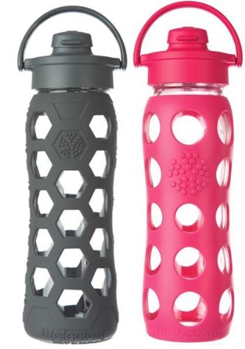 Two Glass beverage bottles with 22-ounce capacity protected by stylish silicone sleeve