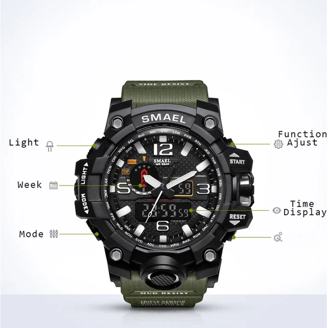| [해외] SMAEL 브랜드 남성 스포츠 시계 듀얼 디스플레이 군사 알람 석영 시계 남성 LED 디지털 남성 시계 시간 relogio |
