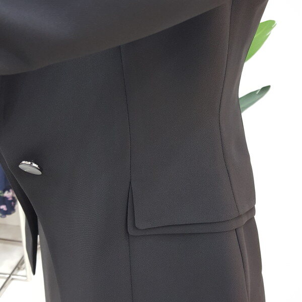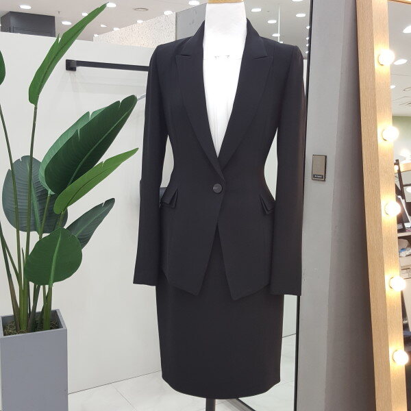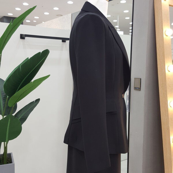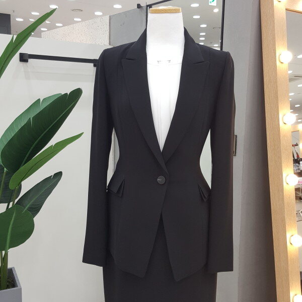 블랙 컬러에 테일러드 카라로 고급스럽고 실루엣이 여성스러운 원버튼 기본자켓입니다. 구김이 잘 가지않는 원단에 깔끔한 핏감으로 직장인이나 면접용으로 좋습니다.