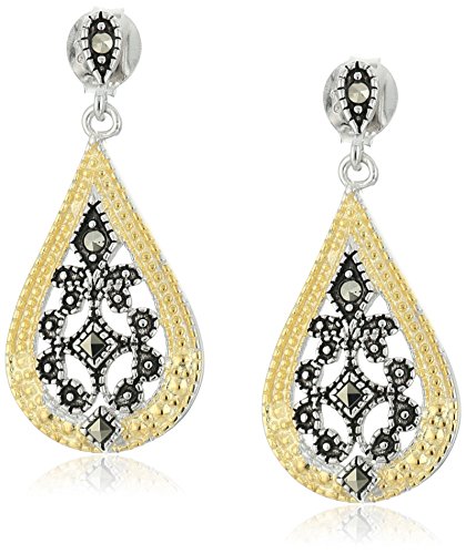 -. Title : Sterling Silver Two Tone Marcasite Drop Earrings