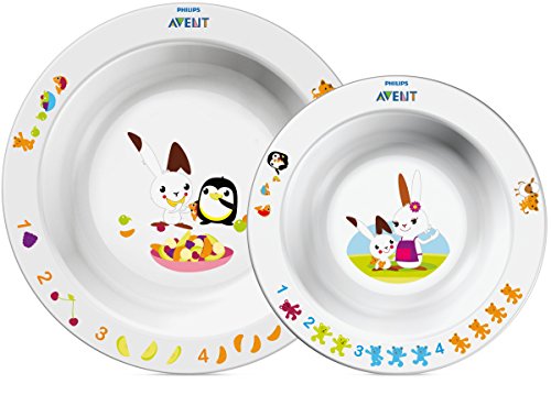 -. Feature : 2 bowl sizes - for dinner, snacks and desserts / Educational storytelling designs Perfect for first feeding and snacks / Anti-slip base - helps prevent spills