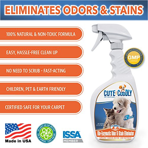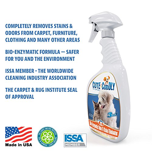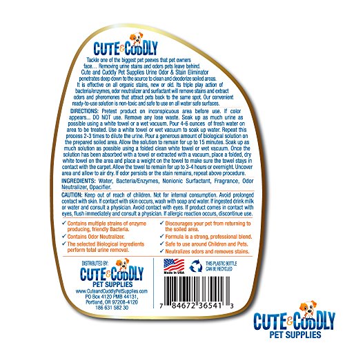 Studio : Cute and Cuddly Pet Supplies Publisher : Cute and Cuddly Pet Supplies Binding : Misc. Product Description --- SCROLL UP and ENJOY a 77% DISCOUNT ON YOUR PURCHASE --- ENJOY YOUR HOME AGAIN WITHOUT THE BAD SMELL - Some people say it smells like dog. To others, it smells like wet dog, cat pee, or even feet. However, it's not pleasant for your home to smell that way. With our urine odor neutralizer and stain cleaner , your home doesn't have to smell like that forever! PREVENT FUTURE URINATION - Pets are more likely to urinate indoors when an animal scent is already there from pee pee. Our product can effectively neutralize urine crystals and acts as both pheromone diffuser and a pet repellant, making sure your pets won't wee in the same place again. WORKS IN CARS, TOO - Did a nervous peeing dog or cat on the way to their grooming appointment stain your automotive upholstery? No need to worry! Our sprayer works as an upholstery cleaner for your pets' urine and a pee remover, too! Get the smells and stains out of your car for good. WORKS BETTER THAN LEADING BRANDS AT A FRACTION OF THE COST - Our spray works better than leading cleaners like Bissell, Gonzo, Resolve, Shout, Odoban, Zout, Fizzion, Chem Dry, Mary Ellens, and Fresh Wave to permanently eliminate stains and odors naturally. And it does this at a fraction of the cost! CONVENIENT 32 OZ. SPRAY BOTTLE - Our urine cleaner and bad smell eliminator doesn't require any other cleaning equipment to make sure smells and stains are gone forever. If you need a severe urine neutralizer, simply use our product on carpets, furniture, enclosures, or in dog or cat cages. Limited Offer! BUY NOW! 0