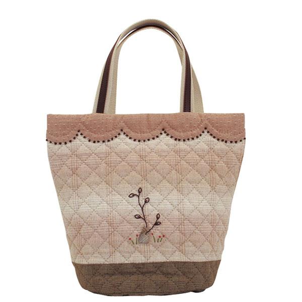 | セット内容 | 表布、裏布、キルト綿、接着芯、持ち手用レザーオンテープ、ししゅう糸、作り方説明書、実物大型紙 |