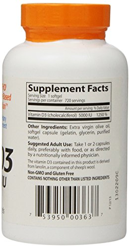 • Doctor's Best Vitamin D3 is available in 1000IU, 2000IU and 5000IU strengths