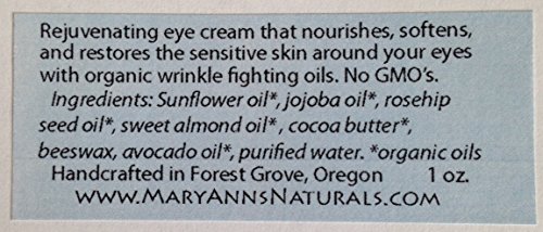 An effective, chemical-free eye cream for people with sensitive skin Regular use of this product will sooth puffy eyes, minimize the appearance of wrinkles, and leave your skin feeling soft, supple and fully hydrated. It can be safely used anywhere that needs a little nourishing attention. Many of our customers enjoy using this product as an overall moisturizer, applying it prior to their makeup in the morning and again in the evening before retiring.
