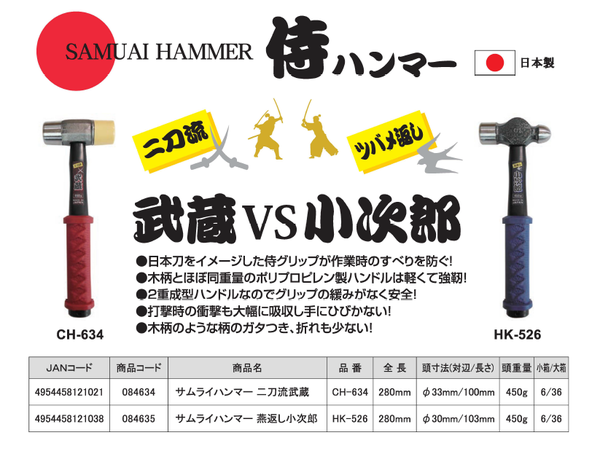 【商品名】(業務用6個セット) サムライハンマー/大工道具 【二刀流 武蔵】 φ33mm/100mm ポリプロピレン製ハンドル CH-634