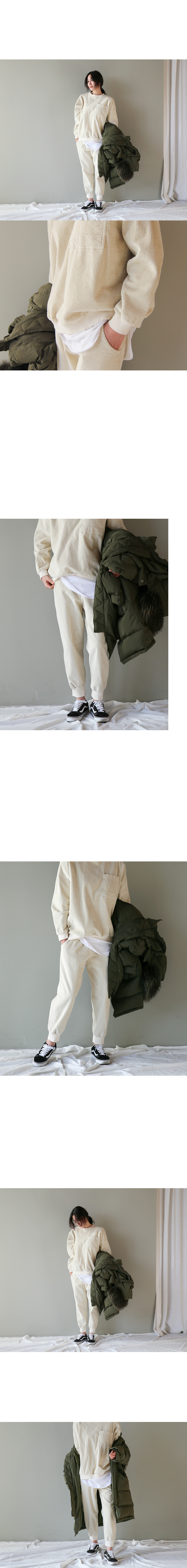 골덴 소재의 밴딩 조거팬츠에요 허리 전체밴딩으로 편하게 착용하기 좋으며 발목부분은 시보리 처리로 되어있어 깔끔하면서 귀여운 느낌이 들어요 골덴 소재의 조거팬츠라 어느정도 두께감있어 따뜻하게 착용가능하세요 양쪽 포켓의 깔끔한 디자인으로 데일리 팬츠로 손색없는 팬츠랍니다^^ 피팅 컬러와 사이즈는 아이보리,Free입니다