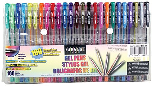 Sargent Art 22-1499 - 100Count Assorted Gel Pen Set - 100 Different Colors, Glitter, Metallic, Fluorescent