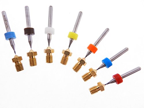 3D Printer Kit J-Head Clogged Extruder Nozzle E3D V6 & V5 (2each) .2mm .3mm .4mm (1 each) .5mm .6mm .8mm 1.0mm bits for unclogging jammed nozzles and improving prints