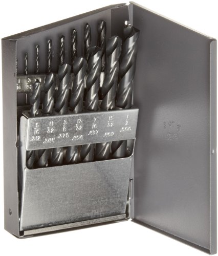 Chicago Latrobe 150ASP Series High-Speed Steel Jobber Length Drill Bit Set with Metal Case, Heavy Duty, Black Oxide Finish, 135 Degree Split Point, Inch, 15-piece, 1/16" - 1/2" in 1/32" increments