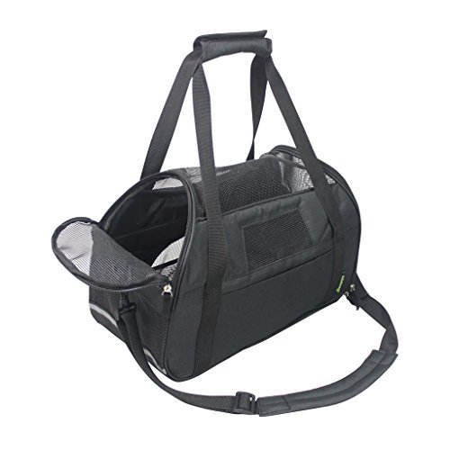 -. Feature : Size:17x9x11.5 inch and 19x10x13inch, can fit most dogs, cats, puppies and pets. / The safety belt loop allows the carrier to be restrained with a vehicle seat belt for car travel. / A small zipper opening at the top of the carrier that allows you to quickly unzip and reach into the bag to access your pet. / A mesh pocket on the side gives you a place to keep essentials for your pet, such as a leash or snacks. Half zip opening on one end, full zip opening on the other end and added mesh panels allow maximum accessibility and ventilation for your pet. / WHATS MORE: This Pet Carrier comes with a removable pad for comfort and easy cleaning. Storage space so you can treat your pet while on the go. Adjustable shoulder strap so you can adjust to your perfect fit. This carrier is great for AIRLINE TRAVEL designed to fit under your seat.