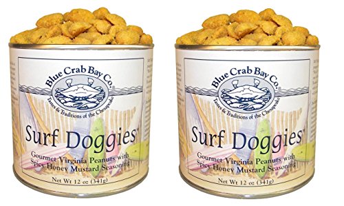 Blue Crab Bay Co. "Surf Doggies" - Spicy Honey Mustard Peanuts - 12 Oz. Tin (Pack of 2)