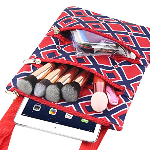 - The triple zippered compartments contain an all purpose pocket that holds your daily essentials