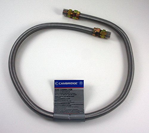- Cambridge Gas Connector w/Fittings, 5/8" O.D. x 1/2" MIP x 1/2" MIP, 48" Length- 106,000BTU …