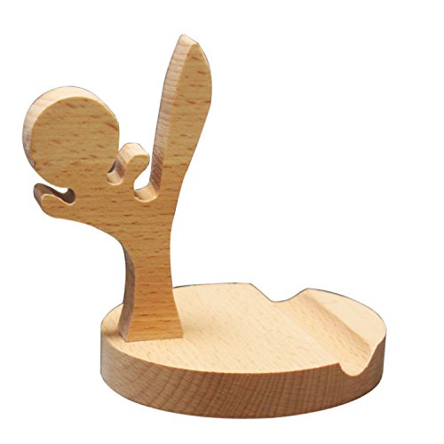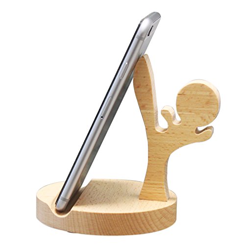 Ancient-Gift Cute Natural Wooden cell Phone Holder / Stand for iPhone iPad Samsung Phone Tablet Plate PC (Kung fu boy)