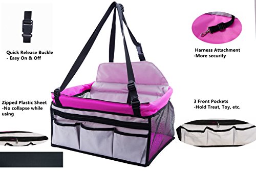 -. Feature : ApproP.R.Iate Size: 17"* 13" * 9", suitable for small sized dogs, such as Teddy, Chihuahua and Bichon. / Deft Design: Proper size fits most cars, for example, and SUVs. It is washable and easy to clean at the meanwhile. / Rational Construction: Have top entry and side windows to circulate air, 3 storage pockets to storage food and toys conveniently. / Superior Quality: Use durable and lightweight material make it possible for long time using. It allows you to drive safely with your pet. / Comfort Experience: We put soft mats on each side of the carrier, guarantee the bag's softness and your pet can stay in it comfortable.