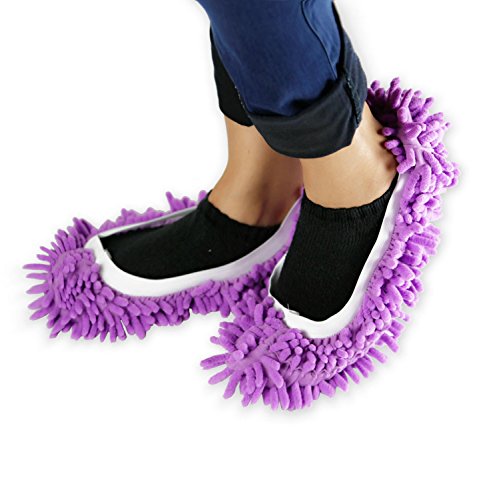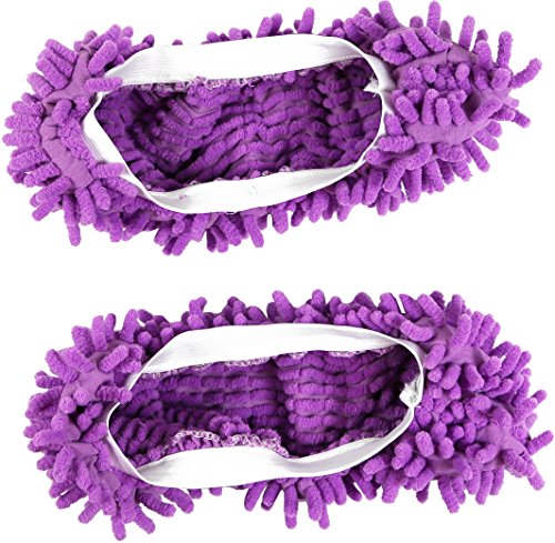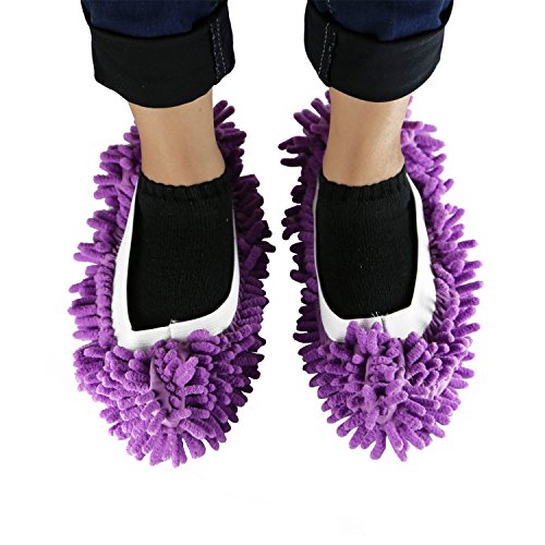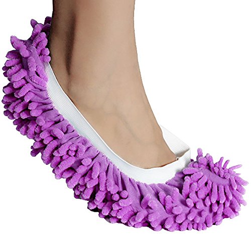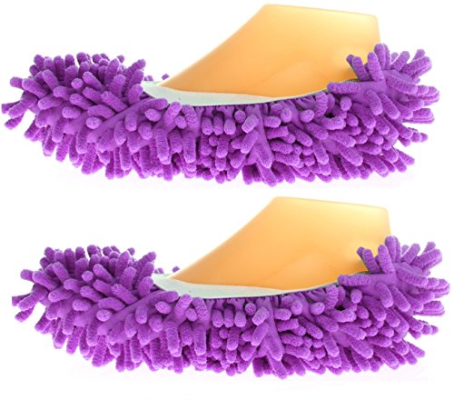 GPCT Unisex Multifunctional [Microfiber] Chenille [Washable] Mop Shoe Cover/Slippers. Perfect for Cleaning Dust, Dirt, & Pet Hair! [2 Pieces]- Purple