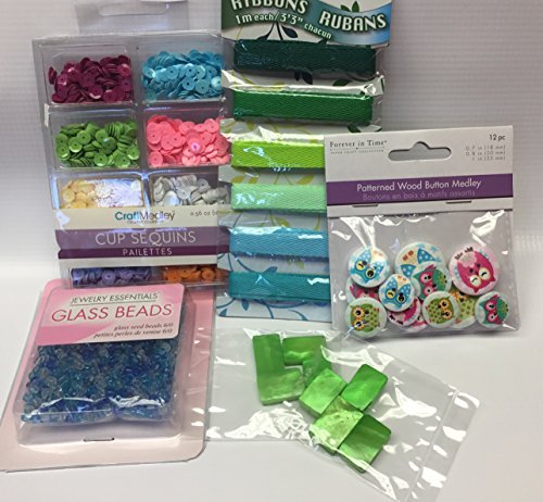 - Owl buttons, sequins, ribbons and beads