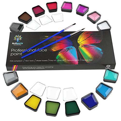 Face & Body Paint Kit Professional Palette by Artiparty - Non-Toxic & Hypoallergenic - Easy to Apply & Remove - Plastic Box for Ease of Storage&Carrying - Ideal as Adults & Kids Face Painting Set