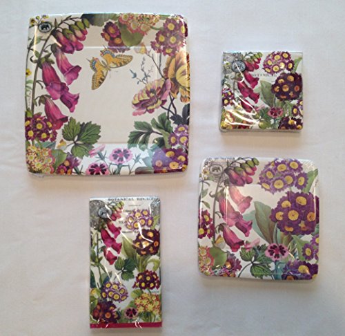 Michel Design Works Primrose Path - 8 Dinner Plates, 8 Dessert Plates, 16 Hostess Napkins, 20 Cocktail Napkins - Paper Bundle
