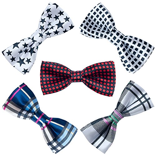 5 pc Boys Adjustable Elastic Pre-Tied Bow Tie Accessory Sets